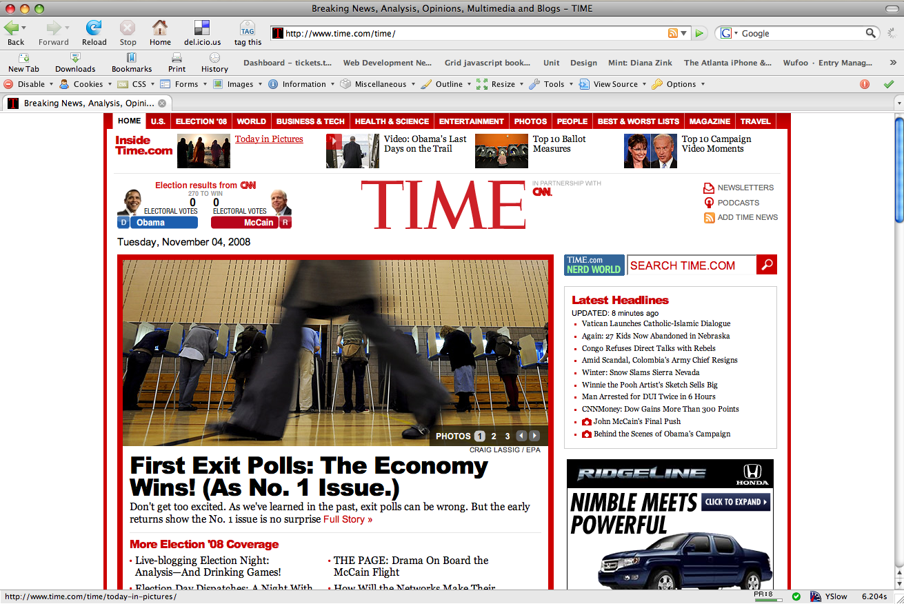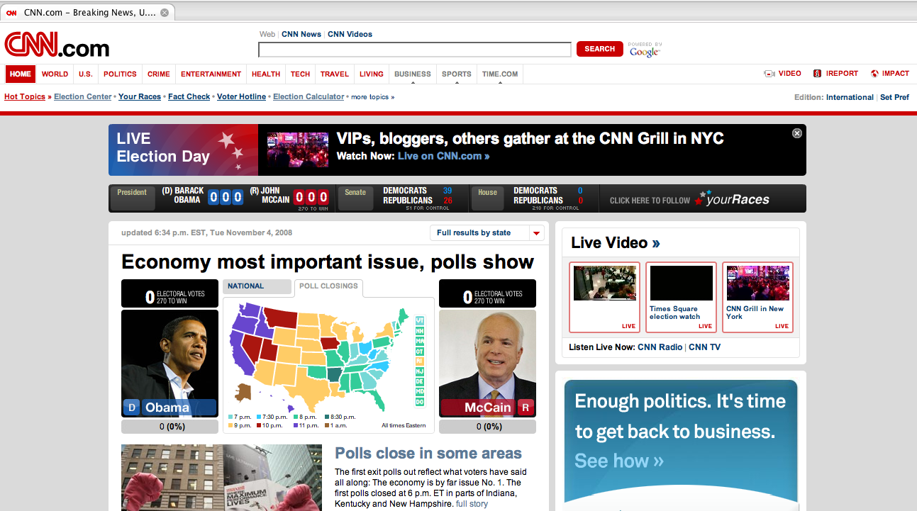 I worked as a rich media apps developer on the flash ticker flippers, video players, and election results displays on the CNN homepage, Times Square Billboard, and sub-widgets across Time.com and other sites